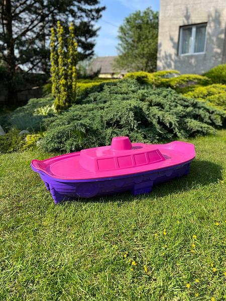 Пісочниця дитяча в формі кораблика Doloni - це пісочниця з пластику, яку можна використовувати як басейн, у формі кораблика з кришкою.